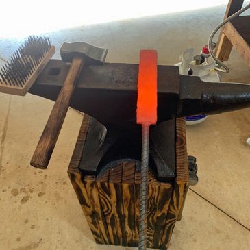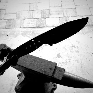 Every knife begins as a bar of high carbon steel; my favorite types are 1084, 80CRV2 and 15N20. I use a propane fueled forge to heat my steel to about 1500+/- degrees so that I can shape the metal on my anvil. Once my pre-form shape is done, I anneal the steel to soften it and make it easier to fine tune on the grinder.